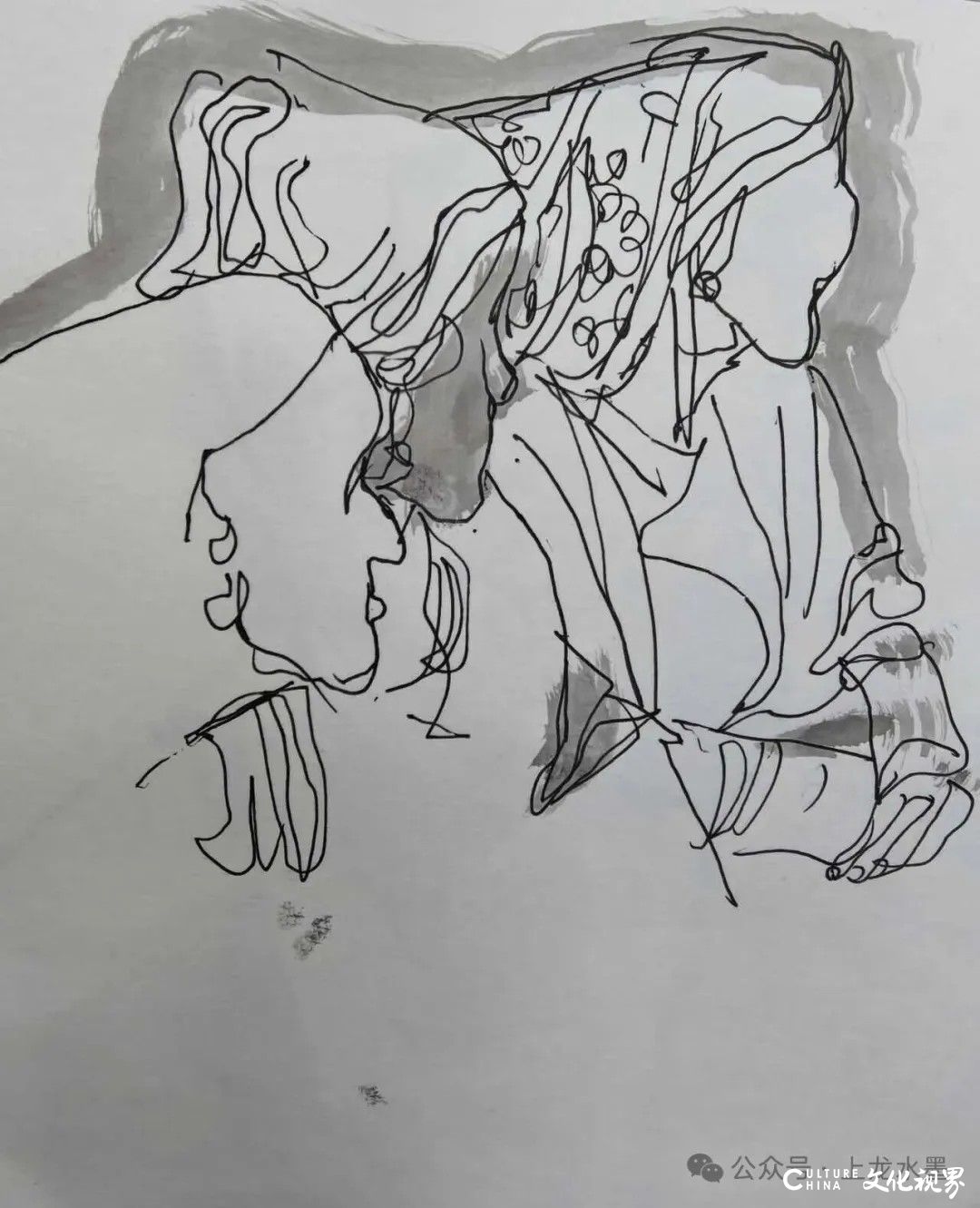 如果说,陈钰铭老师早年的速写还有记录生活、提炼笔墨线条的意图,那么,他近年来的速写已经达到了肆意纵横、物我两忘的状态……