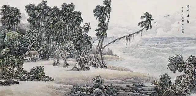 他的创作已超越风情画的浅显表达,而是以大气奔放的笔墨凿开岛屿的原始骨架,呈现出海南岛本身原始而磅礴的生命力,实现了一次从地理本体到艺术本体的双重觉醒。