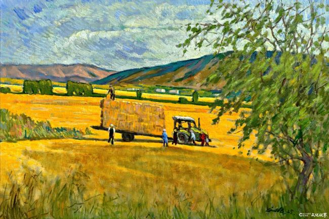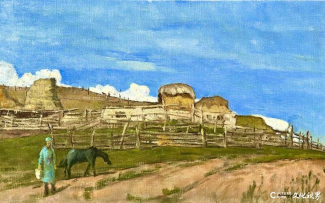 秦烨之画,如沐清风穿堂,似见山水含情。其以油彩为墨,画布为笺,于中西艺术之交融处,辟一方乡土诗意之境。展其作,或见塞北草原天高地阔,牧马人蹄声碎了流云;或观江南水乡烟雨朦胧,石板巷花影湿了青苔。一笔一触,皆为心象之投射;一景一物,尽是乡愁之凝眸。