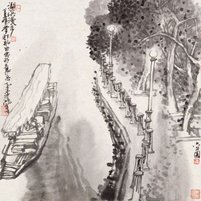 《湖滨漫步》,38cmx38cm,2015年,池沙鸿