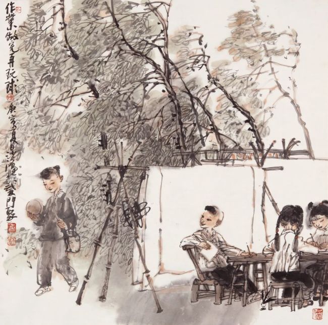 《做功课》,68cmx68cm,2010年,池沙鸿