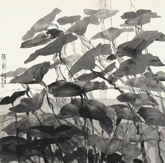 乔宜男《莲蓬知秋意》136cmx68cm 2025年