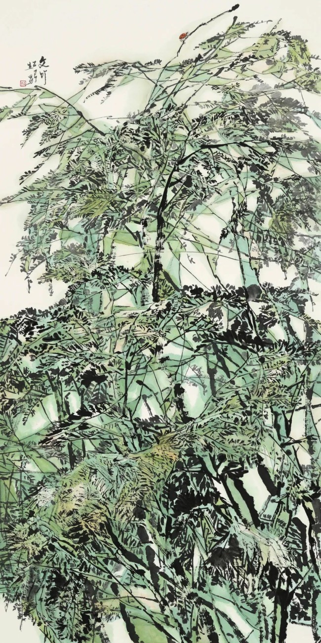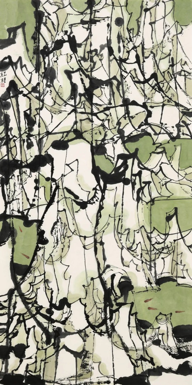 乔宜男《绿池生游鳞》136cmx68cm 2025年