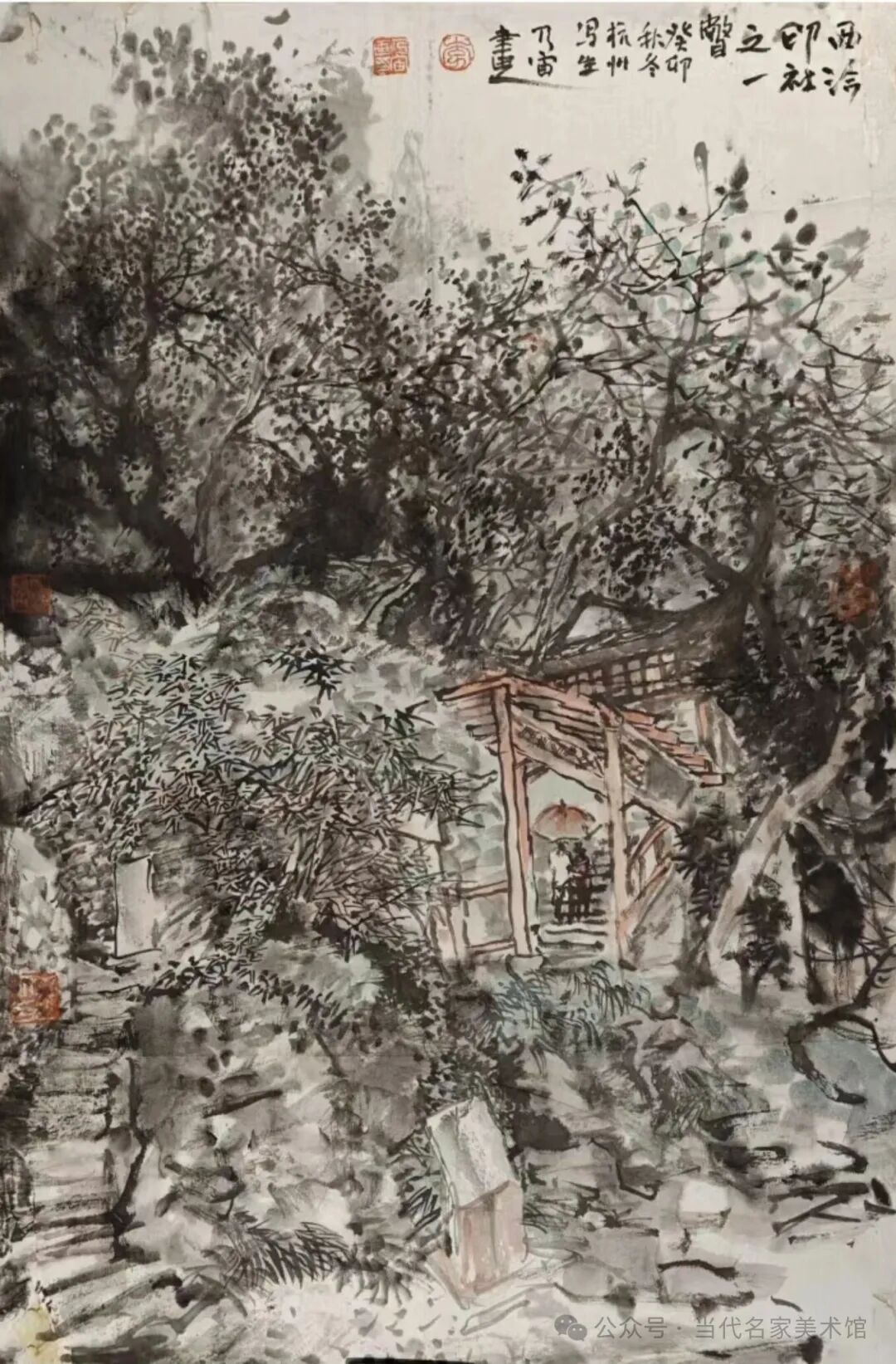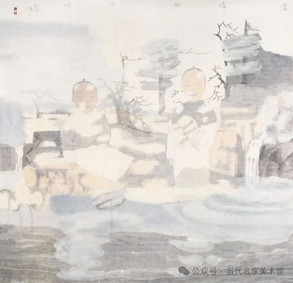 他以独特的“融染法”开创了当代水墨人物画的新境界。他的作品仿佛让阳光、空气和水在宣纸上自由流淌,形成了一种朦胧而充满光感的诗意世界。其笔下的《小溪》获北京88国际水墨画展览大奖,《阳光下游泳的男孩》《三个泳者》等作品则以光斑跃动的视觉效果,捕捉人与自然和谐共处的静谧瞬间。
