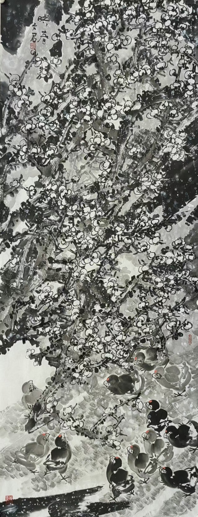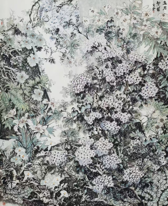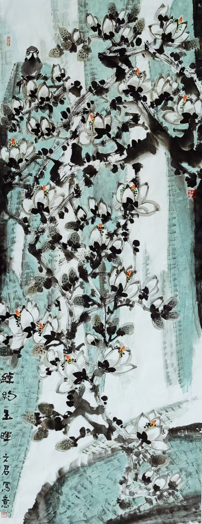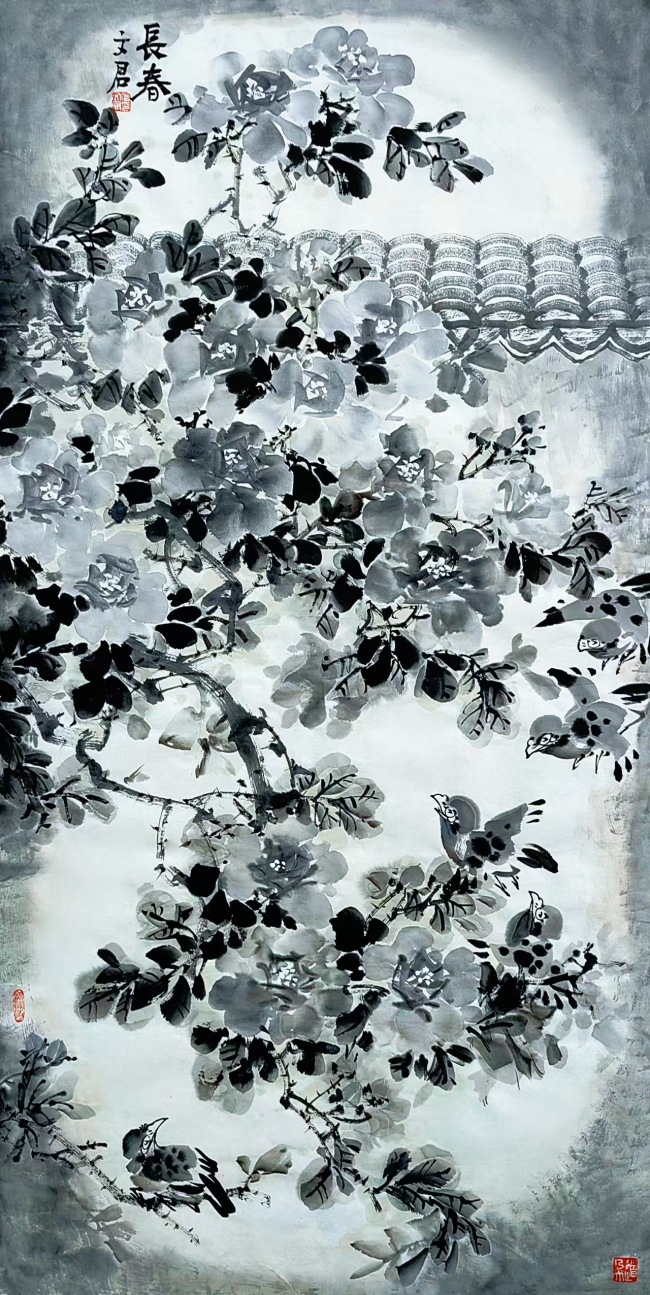 石文君的花鸟画,早已挣脱“绘物”的桎梏,化作一曲墨彩凝就的生命清歌。她以笔为弦,拨动草木生长的韵律;以墨为韵,晕染生灵呼吸的温软,将自然万物的本真性情与天地间的清灵之气,都织进了尺幅宣笺的虚实相生里。她的笔墨从无刻意雕琢的匠气,亦无标新立异的矫饰,唯有对生命本质的赤诚守望。她以笔墨为舟,载着对自然的敬畏、对生命的深情,在艺术长河中缓缓行来,她的作品不仅为当代花鸟画注入了温润的精神力量,更让那份穿越千年的东方雅韵,在当下焕发出愈发动人的光彩,如清风拂过心湖,留下绵长不绝的诗意与哲思。