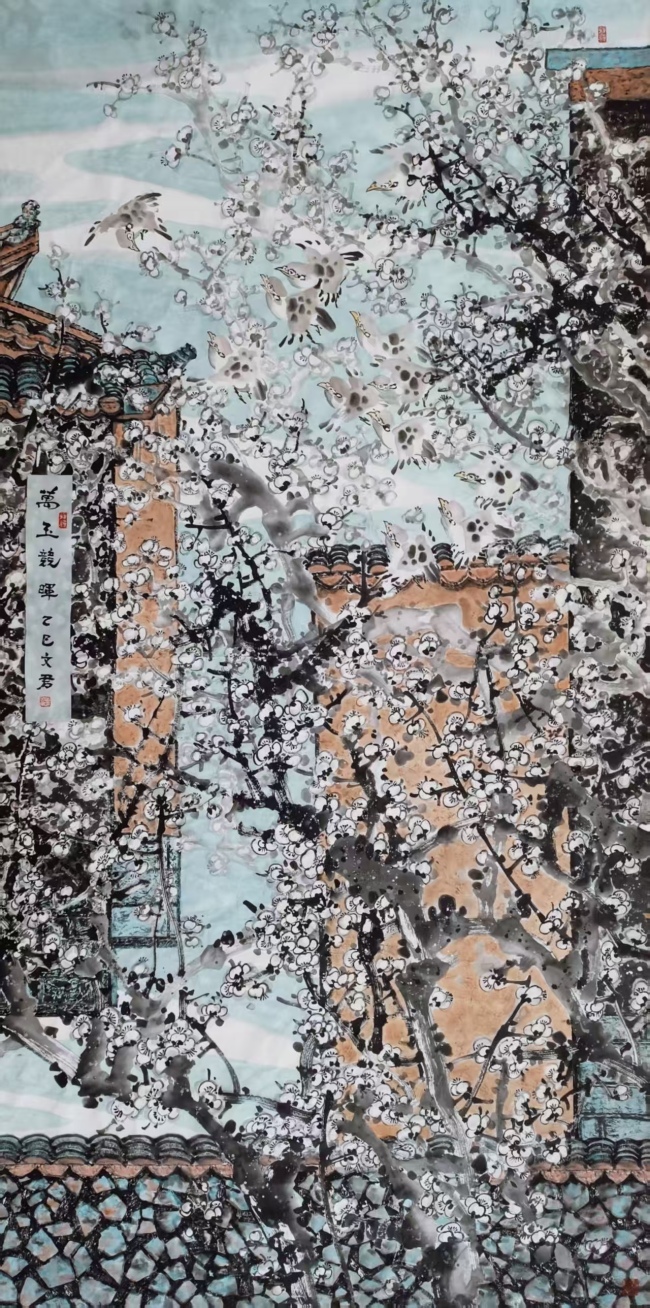 在当代花鸟画的创作实践中,石文君的创作始终坚守着“以心观物、以笔表意”的艺术初心。她不将花鸟视为单纯的自然物象摹写,而是以之为媒介,搭建起一座连接自我心性与天地生机的精神桥梁。其作品的深度,正在于将笔墨语言转化为内心世界的直接表达——每一道线条、每一抹色彩、每一处布局,都是她对生命本质的体悟与对精神自由的追求。观其画作整体气象,我们感受到的是一种超越了形质羁绊的“生趣”与“天机”,一种将花鸟生命融入自我精神世界,再以充盈的诗意流淌于宣纸之上的化境。