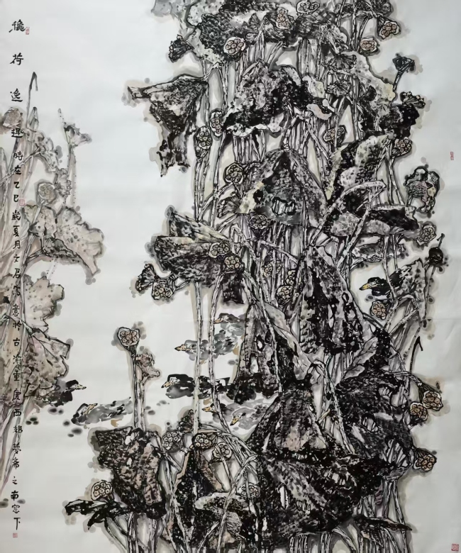在当代花鸟画的创作中,石文君的独特性,正在于她以笔墨为“生命的载体”,而非“物象的工具”。她不追求风格的标新立异,却以对生命本真的感知,让传统笔墨焕发了新的精神温度——当许多创作者执着于“形式的突破”时,她却回到了“生命的内核”,以笔墨为触角,去触摸自然生命的脉搏,去呈现生命本然的丰饶与平和。