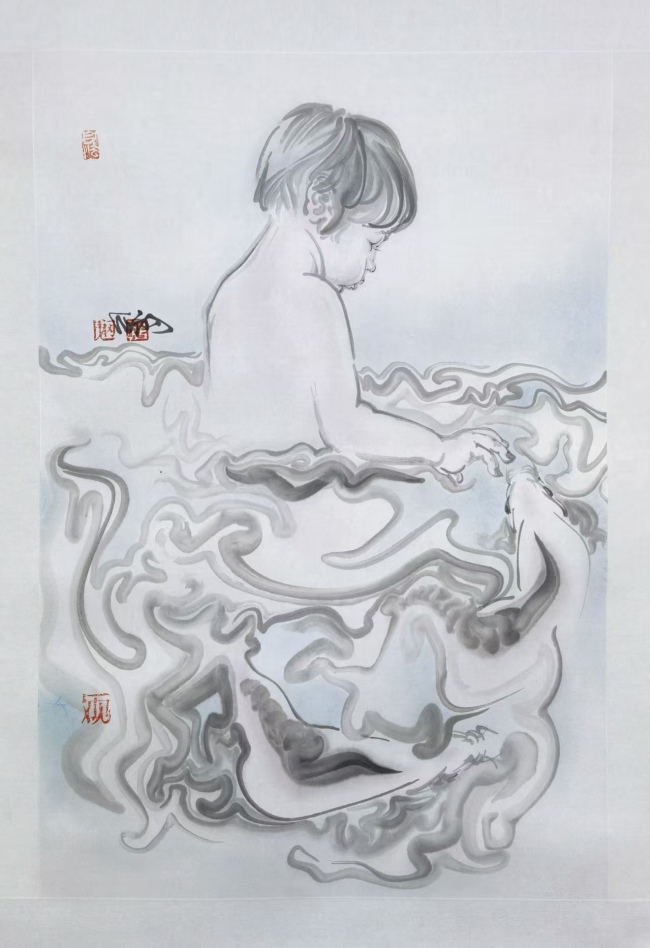 当墨色如流云般漫过宣纸,熊猫的憨态、鸟的轻翼、孩童的眼眸便在浓淡渗化里生出呼吸——赵初凡的《观自在》系列作品,本就是一场“笔与墨、物与我”的共生。他用数年“内视”的沉淀,把书法的笔意揉进物象的轮廓,让传统水墨的“写”与当代精神的“思”,在宣纸上织就了一片既承续文脉、又照见人心的自在之境。