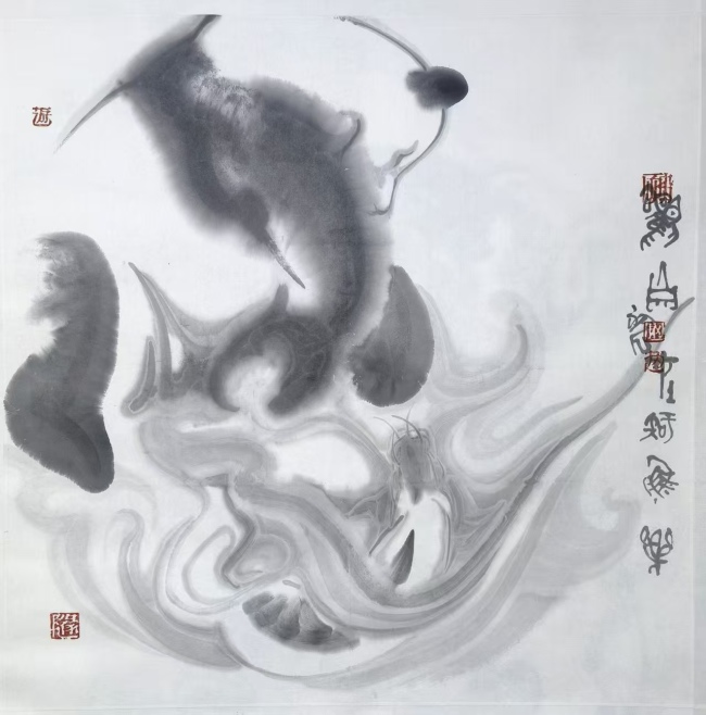当墨色干透,这些画面便成了一片精神的场域。那些流动的墨色,缠绕的物象,甚至笔意的起落,都是他为都市人渡来的片刻松弛,在这里,“观自在”的真意,不过是在墨色漫过的瞬间,看见自己与万物,本就同在一片自在的云气里。
