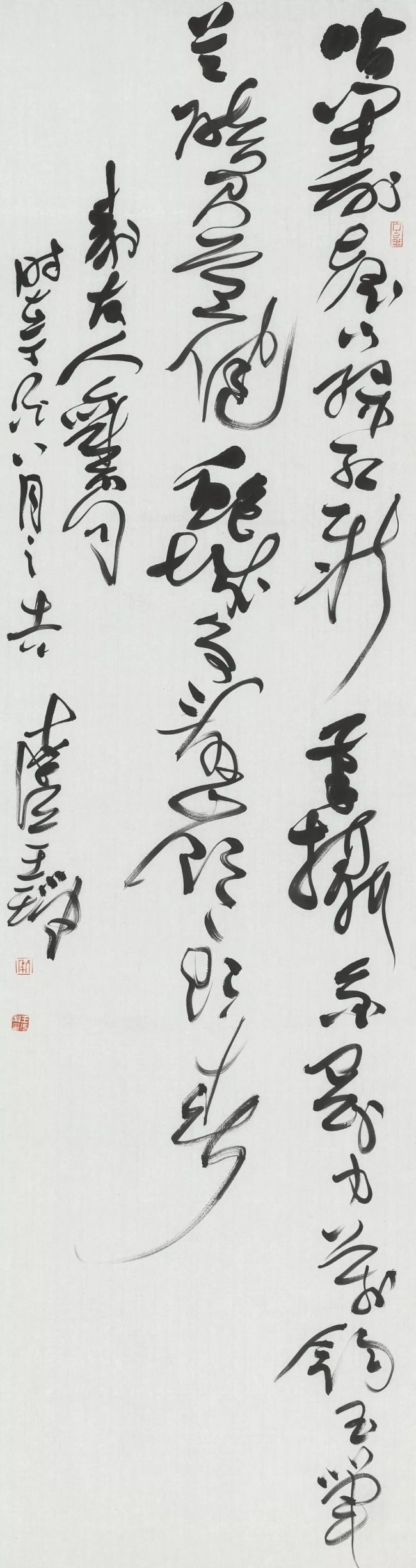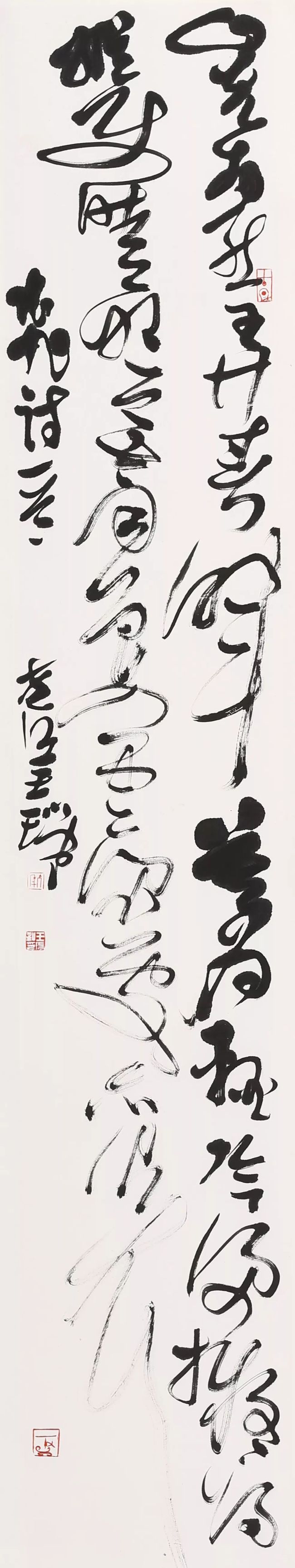 说到他的草书,确实将“静如处子,动如脱兔”诠释得很到位。观看他创作草书的过程是一种享受:起笔时或许还带着篆书的凝重,但随着笔锋的游走,渐渐化作行云流水。最难得的是,即便在最奔放的挥洒中,你依然能感受到那种内在的节制——线条虽然缠绵盘旋,但绝不杂乱;墨色虽然浓淡相间,但总是恰到好处。这种收放自如的功力,需要长时间的沉淀和领悟。