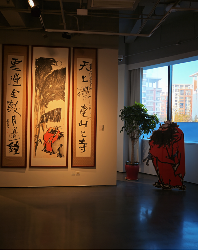 山东省美术家协会驻会常务副主席张宜则以写意人物见长,以大草入画,笔墨纵横潇洒,作品厚重朴拙却不失清气文韵。观其画作,仿佛能与笔下人物牵手相游、执杯对饮,字里行间尽显“气冲云天、勇为天下担”的豪情壮志,是其关注人文、倾情社会的真实写照。