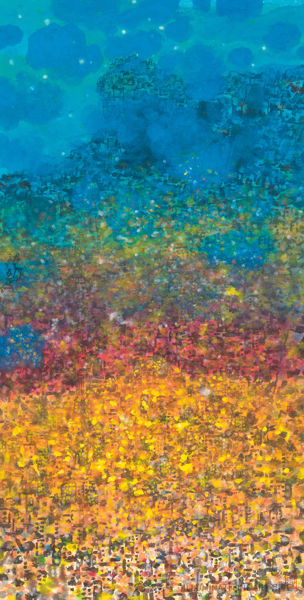 《狮山华彩》水墨设色纸本,144 x 74 cm,2025