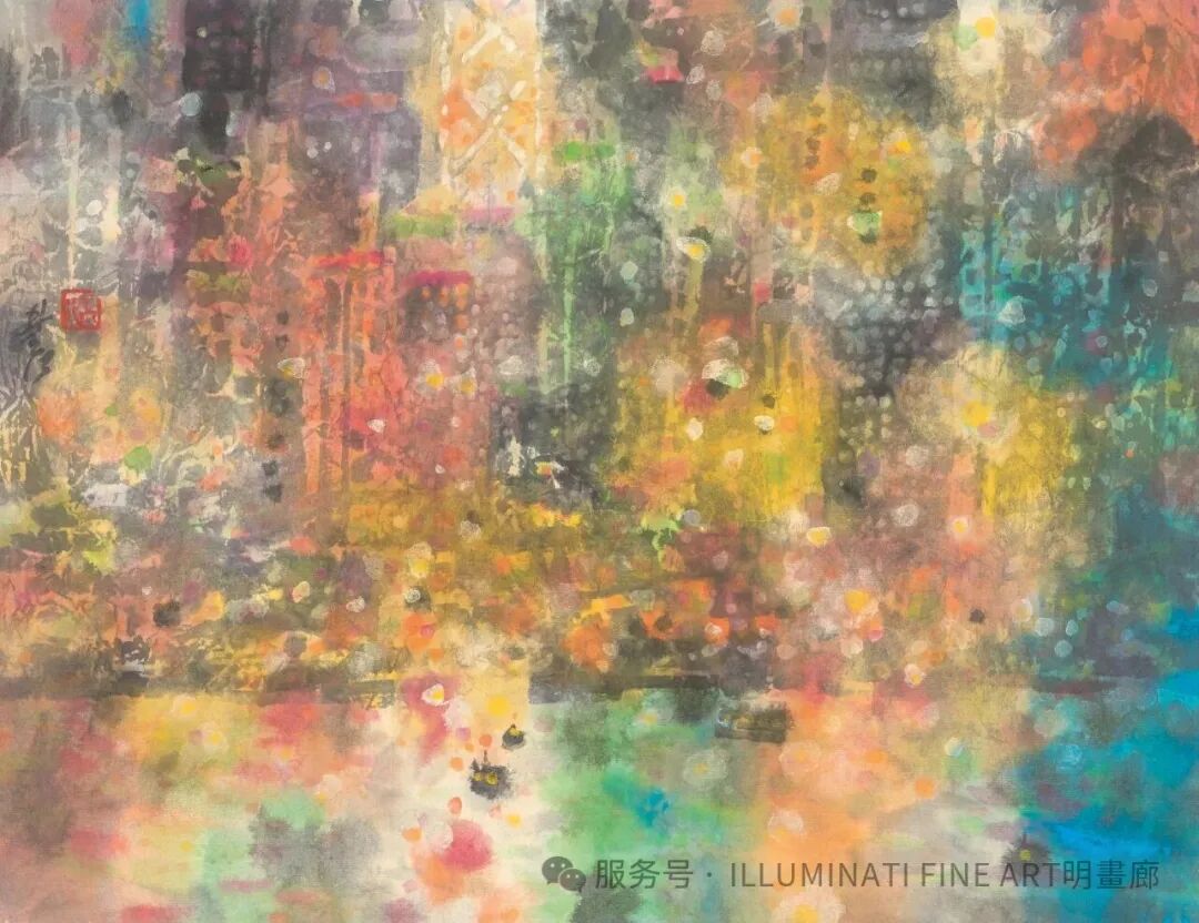 《维港夜游》水墨设色纸本,35 x 45 cm,2025