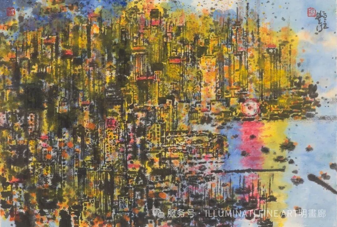 当中以展览名称同名的作品《夜·香港》(2025年)描绘维港两岸夜色,香江晚上,高楼大厦与船隻航行的灯光交映成辉,维港海面波光粼粼。作品墨韵沉著间蕴藏夜色特有的层次感,色彩斑斓中可见霓虹与万家灯火的交织。香港知名地标在夜色中若隐若现,虽不刻意写实,却能让观者觅得熟悉的痕迹。