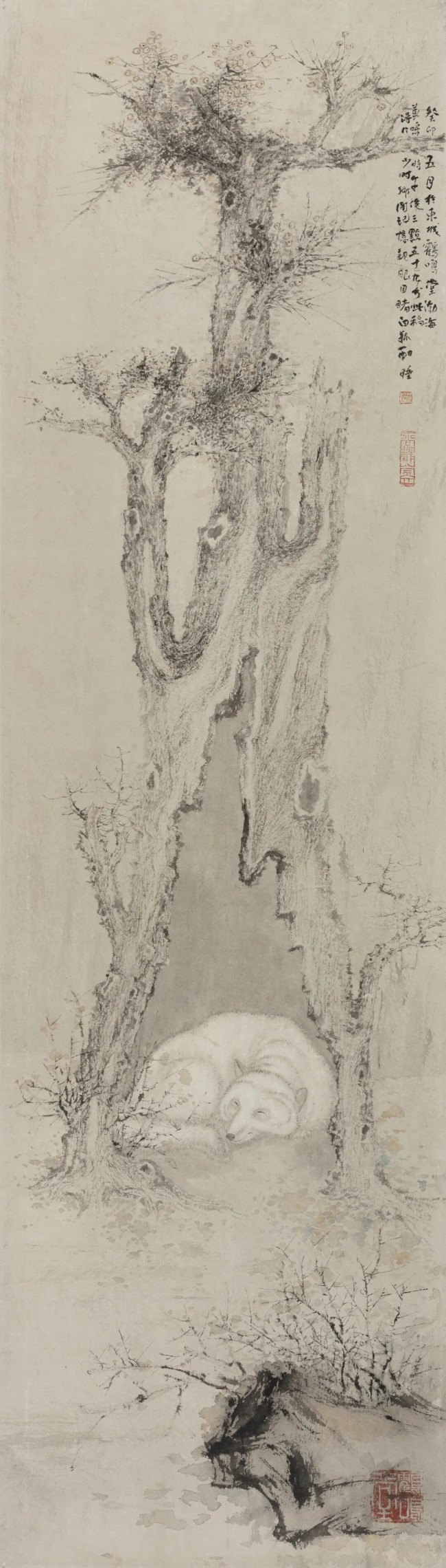 《白狐酣睡》123.5×25cm纸本设色2023年