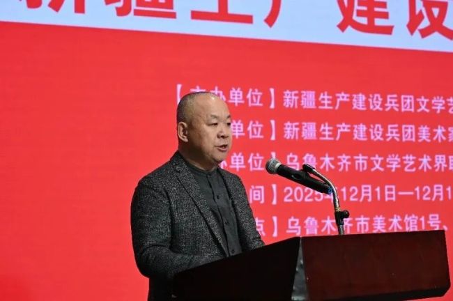 兵团美术家协会主席万里明介绍了展览的组织与评审情况。他表示,此次展览不仅是兵地美术创作成果的集中展示,更是推动兵地艺术交流、激发创作活力的重要平台,希望兵团广大美术工作者继续扎根生活、扎根人民,创作出更多有筋骨、有道德、有温度的精品力作。