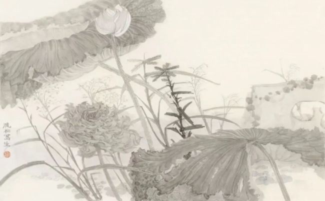 很难想象,这个微腆肚子、乐呵呵的西北汉子,就是亲手绘出那些唯美、精微工笔花鸟的大名家。他一边热情招呼我这个素昧平生的造访者,一边与同事闲聊,说着说着就自顾笑起来。