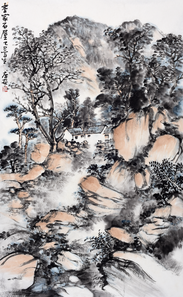 若论林存安山水画之造诣,可谓“出新意于法度之中,寄妙理于豪放之外”。其笔下山川,深得新安画派清逸冷隽之遗韵,又融入黄岳烟云之苍润。观其《黄山秋霭图》,皴法兼取倪瓒之疏淡与石涛之纵肆,于枯润浓淡间构建出多层次的空间韵律;《溪山清远卷》则可见其对董源“平淡天真”美学的当代诠释,以简净的线条驾驭宏阔的构图,在虚实相生中透露出士人画特有的书卷气息。其作品最为可贵者,在于将数十年从政生涯所积淀的宏观视野与历史意识,转化为画面中特有的秩序感与深广度——那不是对真山真水的简单摹写,而是经过文化心灵涵泳的意象重构,是“丘壑内营”的当代典范。