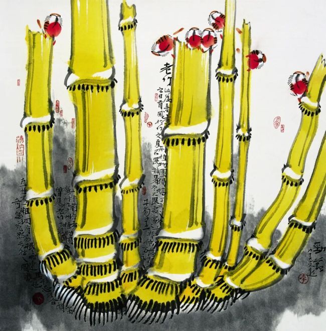 展出的数十幅竹题材作品,涵盖风雨竹、雾竹、雪竹、露竹等多种情境,在传统笔墨中融入了当代审美意识;而花鸟鱼虫作品,则体现了对传统花鸟画精微之处的继承与写意精神的深入领悟。花卉舒卷,禽鸟顾盼,生机流转,韵律自在,可感艺术家的情感寄托、人格追求及对万物的静观与热爱。