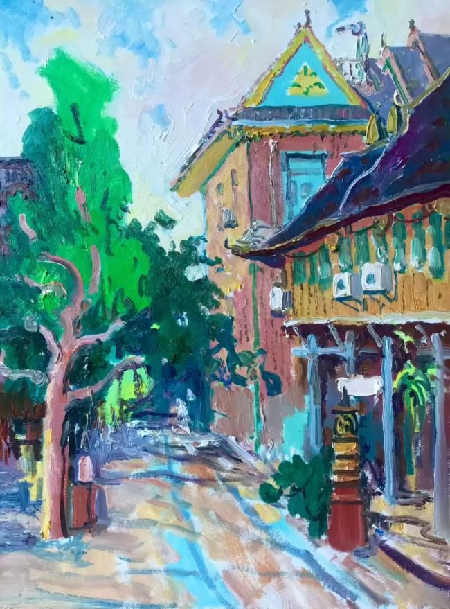 这样的生活,也滋养着他关于艺术发展的思考。迟连城认为,艺术的生命之树唯有发展才能常青。如今,他正尝试将西双版纳独特的自然符号、光影节奏与色彩情绪,融入自己的油画语言探索中。这不仅是技术的锤炼,更是对自然、生命与艺术的再认识与再表达。