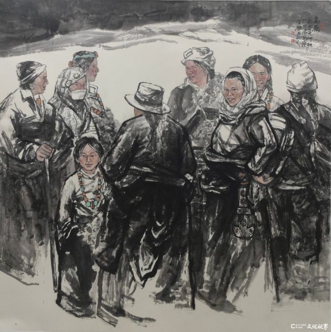 除了重大题材创作,陇原风情、民族风貌,也是他笔墨深耕的领域。《即将尘封的记忆》《乡愁》《高原》等系列作品,以细腻的笔墨描绘窑洞、石磨、老椅子等老物件,刻画乡村老人、高原牧民的鲜活形象,将对故乡的眷恋、对时光的感慨、对生命的敬畏,融入每一笔线条、每一抹色彩。在艺术表达上,他深受敦煌壁画启发,大胆探索水墨与彩墨的交融之道,通过笔墨摩擦营造斑驳厚重的质感,以“计白当黑”的技巧增强画面张力,形成了辨识度极高的个人艺术风格,让传统笔墨在当代语境中焕发新的活力。