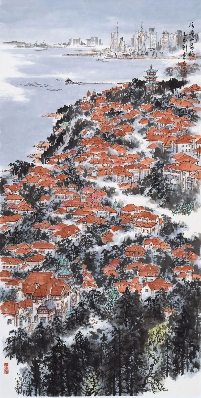 这“可栖居”之感,正是杨惠东山水画精神内核的折射。他的山水,超越了地理的摹写,也超越了形式趣味的玩索,而升华为一种理想化的精神家园图式。画中的亭台楼阁、溪桥野渡,往往安设于险峻奇崛之境,却又笼罩在一片祥和、静谧、澄明的氛围之中。这是一位现代文人面对纷繁外界,向内寻求秩序、安宁与力量的心灵写照。其画境,在雄浑中见幽邃,在苍茫中蕴温润,在传统笔墨程式中,悄然灌注了个体生命对永恒自然之道的静观与体悟。