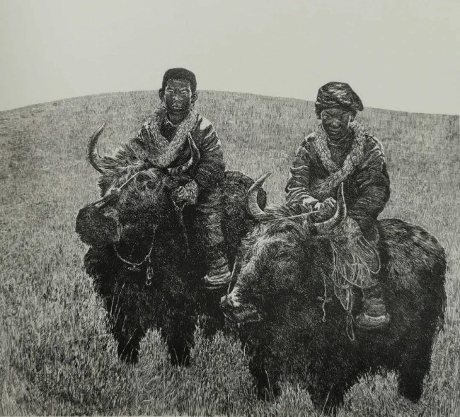 作品名称:高原之子(第十三届全国版画展铜奖)