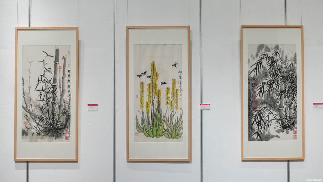 步入展厅,百余幅跨越半个多世纪的书画作品次第铺陈,犹如一条蜿蜒的艺术长河。从竹影婆娑到花雨缤纷,从禽鸟顾盼到藤木虬劲,李方玉以灵动笔墨构建起一个生机盎然的精神世界,将人生体悟与人文哲思熔铸于尺幅之间,让寻常物象承载起超越视觉的文化张力。作为画坛公认的兰竹高手,此次展出的数十幅竹题材作品尤为引人注目,风雨竹的磅礴、雾竹的迷蒙、雪竹的清劲、露竹的鲜嫩,在传统笔墨法度中融入当代审美意趣,或水墨淋漓、气势恢宏,或笔力遒劲、意境悠远,令观者恍若置身竹海仙境,深切感受“为竹子传神”的艺术魅力。