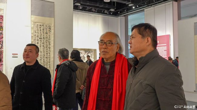 出席展览开幕式的领导和嘉宾有:山东省人民政府原秘书长蒿峰,济南市委原常委、秘书长蒋晓光,山东省委宣传部原副部长李建军,山东省美术家协会名誉主席、山东电视台原台长曾昭明,山东省政协科教文卫体委员会原专职副主任、省政府原副总督学、山东省诗词学会顾问郝铁柱,山东省美术家协会名誉主席、济南市文联主席张望,山东省美术家协会常务副主席兼秘书长张宜,济南市美术家协会原副主席郭英培,大众报业集团监事会原主席支英琦,山东文史研究馆处长郭谦,山东艺术学院教授谭英林,济南画院名誉院长康庄,济南画院名誉院长李承志,山东省中国画学会顾问刘书军,山东大学荣聘教授李学明,山东女画家协会副主席冷珍,山东师范大学教授韩玮,青岛市美术家协会名誉主席邱振亮,山东画院书记、副院长、山东省美术家协会主席团委员樊磊,山东画院副院长、青年画院院长孙棋,山东画院原副院长王磐德,河北省顺达集团有限公司董事长、河北省企业界书画家协会主席张雷民,河南省濮阳市政协原秘书长史庆林,中国石化书协首届副主席、中原油田书协首任主席仝相和,著名画家冯增木,山东艺术学院中国画系副教授林兵,山东当代花鸟画院院长天豪,山东省东西方比较文化学会会长宋怀谦,著名画家王辉亮、徐康、郭执铨、张乐毅,山东广播电视报“盛世丹青”栏目主编铁军,中国美术家网主任刘军;山东画院创作部主任李恩成,展览部主任耿晏、副主任刘扬,研究部副主任张肖萍,宣传推广部副主任翟圣亮,专职画家李玉旺、孙春龙、李晓辉、李昂、王梅言、王升旭、孙蔚然;以及张海平、韩潇、师庆荣等各界好友百余人。