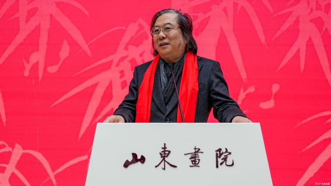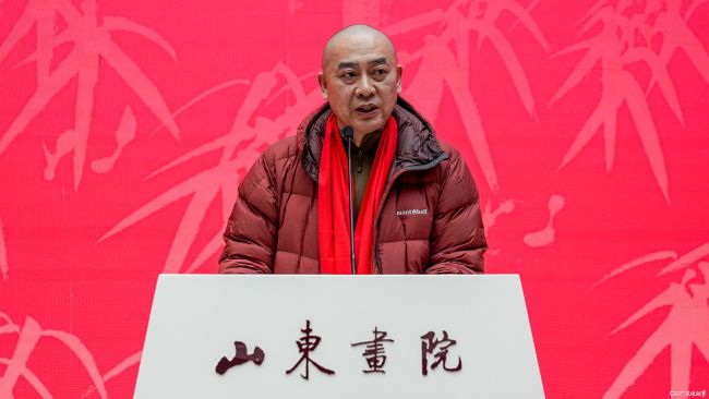 张宜主席代表山东省美术家协会致辞祝贺展览圆满成功,向到场的老一辈艺术家们致以诚挚敬意。李方玉先生是齐鲁文化滋养出的敦厚艺术家,他甘于寂寞、潜心创作,极少参与各类展览活动,默默耕耘至80岁之际集中呈现佳作,为年轻一代树立了深耕学术的榜样。此次展览也是山东美协“推老带新”工程的重要组成部分,中青年一代将把传统接力棒握在手中,愿齐鲁美术界薪火相传,祝老艺术家福寿安康,新春顺遂。