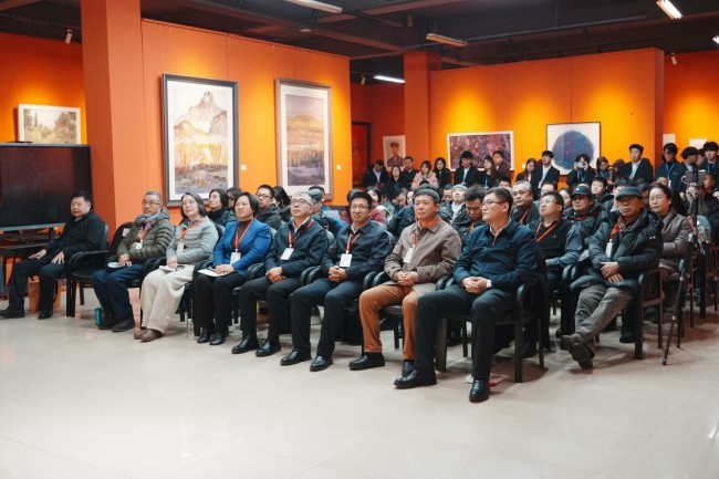 为搭建南北美术教育交流平台,促进高校美术教学资源共享与创作理念融合,12月21日上午,由大庆文学艺术界联合会、大庆师范学院、湖北美术学院、哈尔滨师范大学主办的“2025笔触年轮——湖北美术学院徐勇民教授师生、哈尔滨师范大学美术学院孟宪德教授师生作品联展”在大庆师范学院美术馆开幕。湖北美术学院党委书记鲍清芬,哈尔滨师范大学党委副书记郭砾,湖北省政协常委、湖北美术馆原馆长、本次画展策展人冀少峰先生,黑龙江省文化和旅游厅科技教育处处长王大富,大庆师范学院党委书记赵科学,大庆师范学院校长、党委副书记张平,大庆市文联主席吕向阳,中央美术学院博士研究生导师、王春辰教授,湖北美术学院美术馆馆长张杰教授,湖北美术学院研究处副处长杨艺教授,哈尔滨师范大学美术学院党委书记顾德光,大庆市美术家协会主席陈彦龙,大庆市美术馆馆长付熙云,民进大庆市委副主委张子旭,参展画家湖北美术学院原校长、博士研究生导师、徐勇民教授,参展画家哈尔滨师范大学美术学院院长、博士研究生导师、孟宪德教授等出席本次联展的开幕式,还有近两百位师生代表参与活动,活动由大庆师范学院副校长许双毅主持。