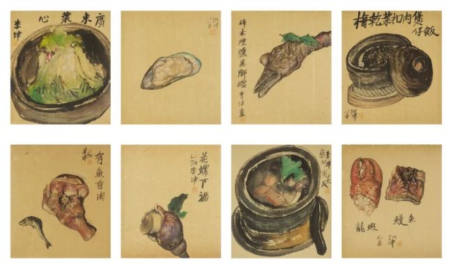 李津,食色大班楼,22×20cm×8,纸本水墨设色,2025