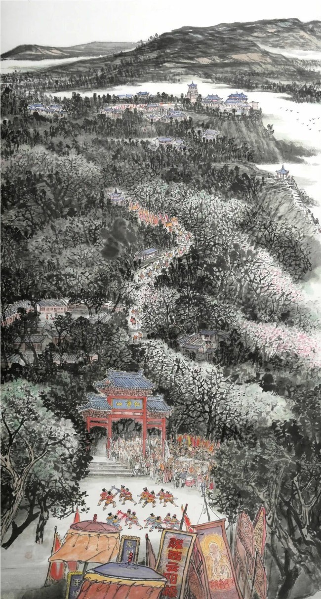 在当代艺术多元化发展的今天,梁宗文的创作为中国画的发展提供了珍贵的实践样本。他再次证明,艺术不必远离生活,更不必刻意追求“先锋”与“前卫”,只要扎根本土、贴近人民,从民俗文化中汲取养分,从百姓生活中捕捉美好,就能创作出有温度、有深度、有生命力的作品。而陇西的民俗文化,也因这样的艺术创作得以延续与传播,在笔墨的滋养下,古城的“春喧”盛景终将成为永恒的美好,在亘古不变、百姓喜乐的岁月中永续流传。