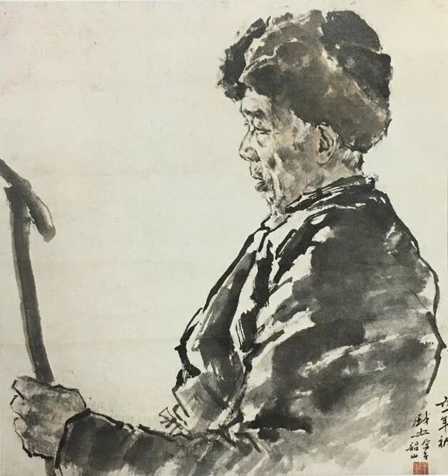 扶杖老人1961年49×44cm中国画王盛烈