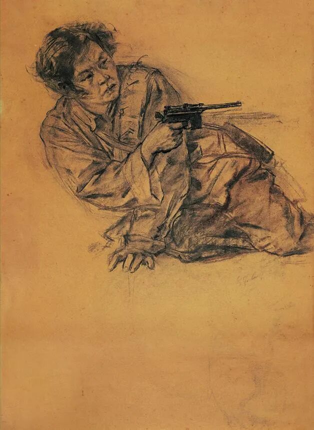 八女投江习作1957年96×63cm素描王盛烈