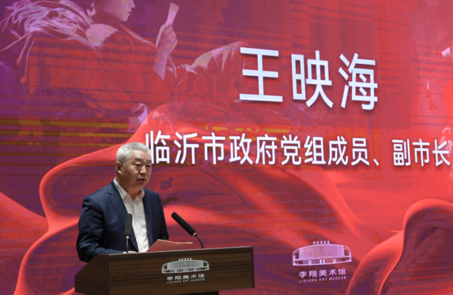 山东艺术学院院长、省文联主席、省美术家协会主席徐青峰,著名油画家王沂东,山西省左权县委常委、政法委书记曹峰云,中国美术家协会理事、省美术家协会副主席杨文森,临沂市人民政府副市长王映海等领导嘉宾出席。徐青峰、王沂东、王映海致辞,市文化和旅游局党组书记王晓锋主持开幕式。