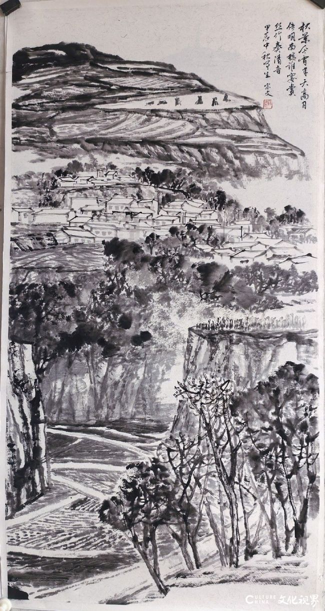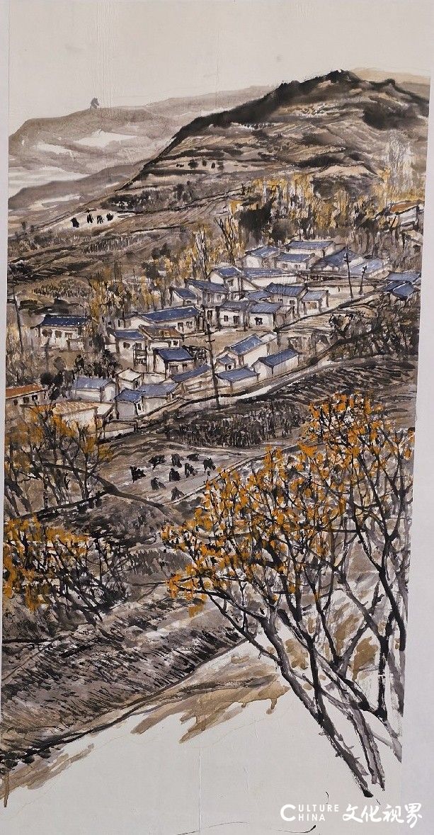 数十年来,宗文兄始终以赤子之心面对家山,以踏实之态打磨笔墨。他对家山的热爱真挚而浓烈,对着荒山沟壑、村落山埂,便会生出莫名的兴奋,拉着身边人念叨:“快看看这地方,画出来多好看……”他常独自骑车,一头扎进黄土原,用画笔真诚记录每一份感动。心无旁骛地写生,是对故乡最深情的絮语,也是对传统笔墨最质朴的诠释。这份扎根故土的坚守与真诚,正是其作品最动人的灵魂所在。