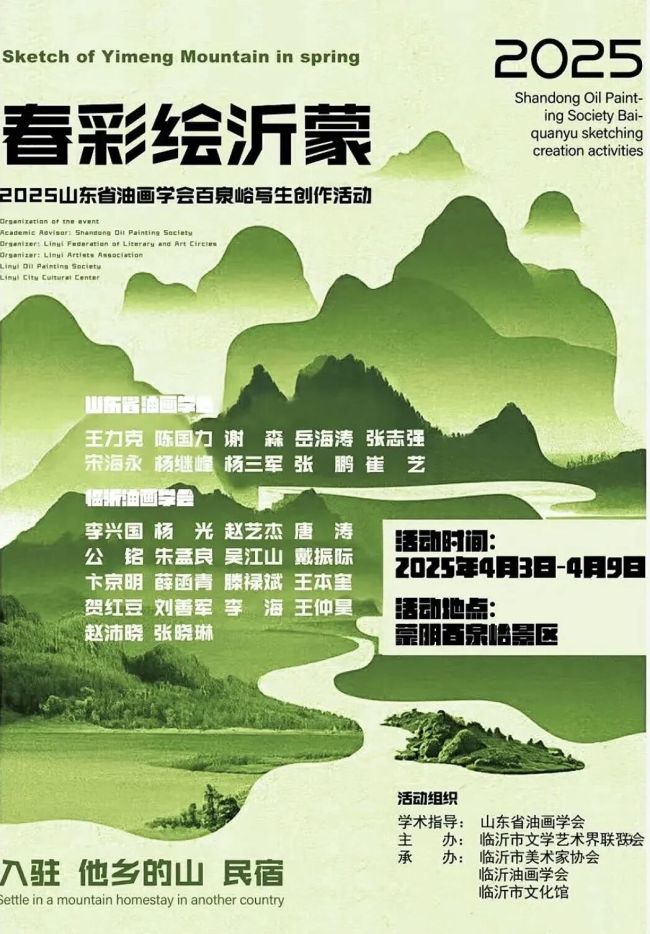 4月4日,由山东省油画学会学术指导,临沂市文学艺术界联合会主办,临沂市美术家协会、临沂油画学会、临沂市文化馆承办的“春彩绘沂蒙——山东省油画学会·临沂油画学会蒙阴百泉峪写生创作活动”启动。