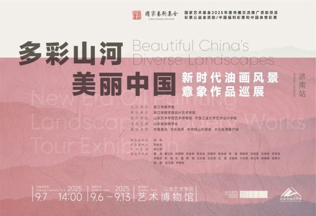 9月7日,由山东省油画学会学术支持的国家艺术基金“多彩山河美丽中国——新时代油画风景意象作品巡展”首展在山东艺术学院艺术博物馆开幕。