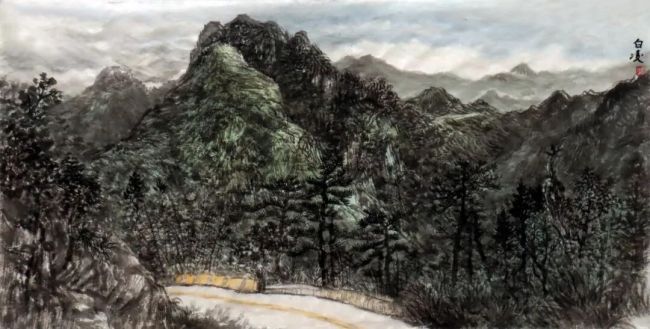 “烟云之虚”的空间构建持续的阴雨,赋予了莽山最具呼吸感的特质——烟云的流转。云气弥漫、升腾、聚散,它们并非静止的背景,而是参与塑造山体神态、构建画面空间的主导力量。在创作中,用淡墨层层渍染,形成朦胧变幻的层次,留白处乃是涌动的、湿润的空气与光;以湿笔破墨,使物像边缘化入朦胧。画面因云烟的“虚”而气息通达,因山石的“沉”而精神凝聚,在有无之间,构筑一个可供心神栖居的苍茫世界。这不仅仅是自然现象的记录,更是我对“虚实相生”这一中国美学核心观念的体悟与表达,在朦胧中寻求清晰的精神指向。