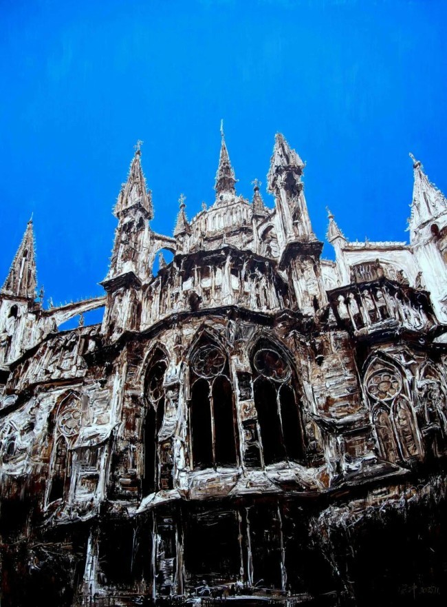 当我们站在宋冲的画前,触到的从来不是画布,而是北疆的风骨。他用油彩,把生灵的眼神、风景的重量、建筑的魂魄,都织进了布面的肌理里——那是冷的,却也是热的;是苍白的,却也是饱满的。他的画是北疆的风,裹着冰原的气息,却在褶皱里藏着生命的温度,而这一切,都是他用执着,在画布上刻下的、属于这个时代的精神年轮。