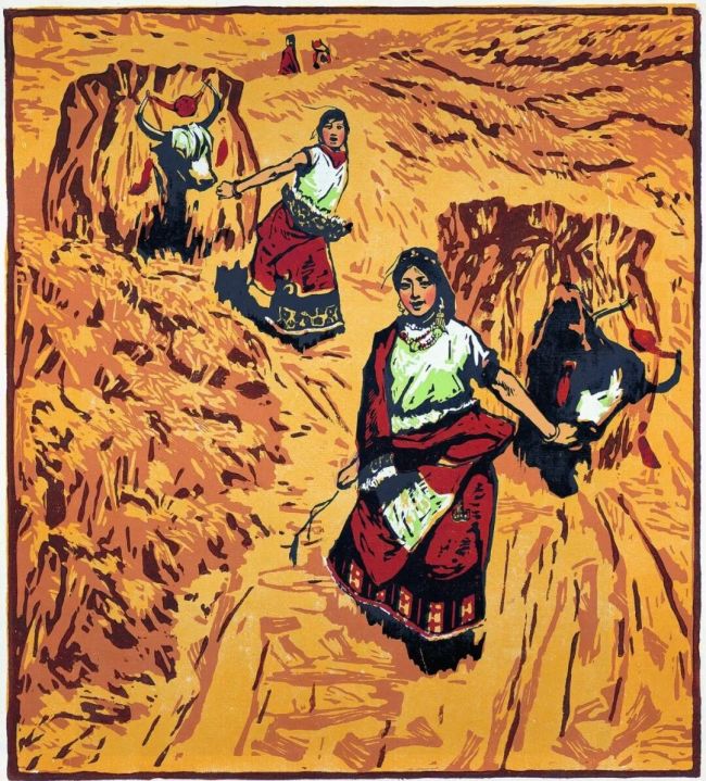 李焕民《初踏黄金路》版画54.4cm×48.8cm1963年