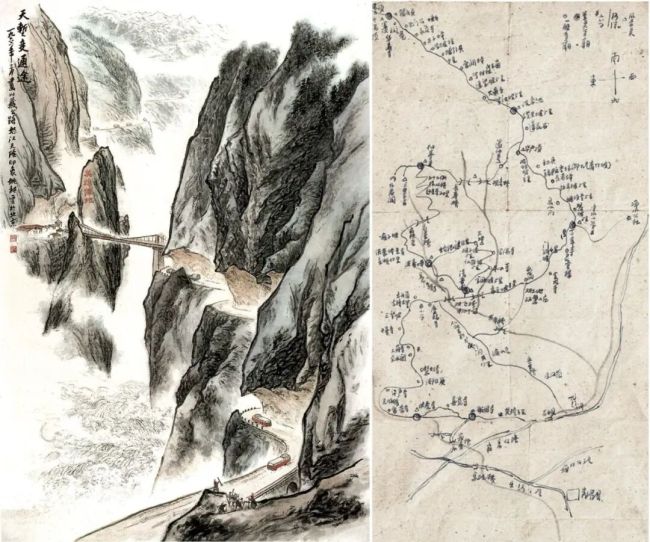 右图:1965年姚耕云《手绘路线图》