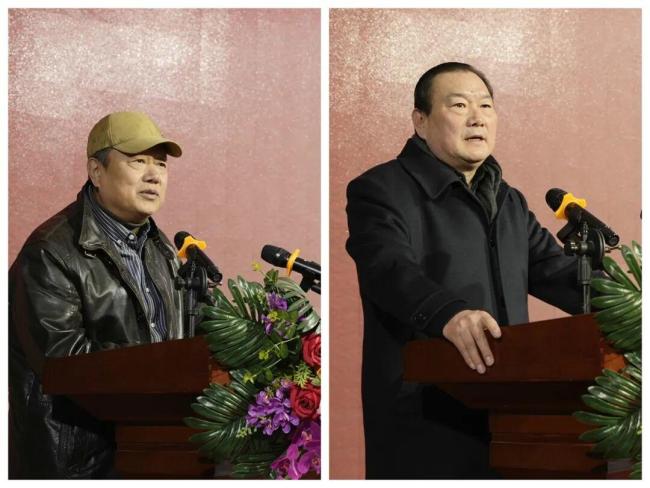 中国国家画院研究员、泰山山水画院院长贾荣志致辞(左)