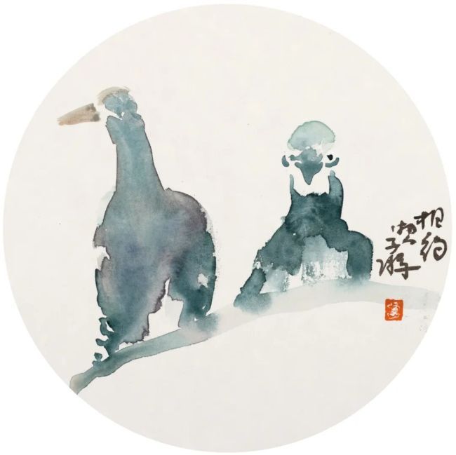 陈子游 相约 直径27cm 纸本设色 2025年