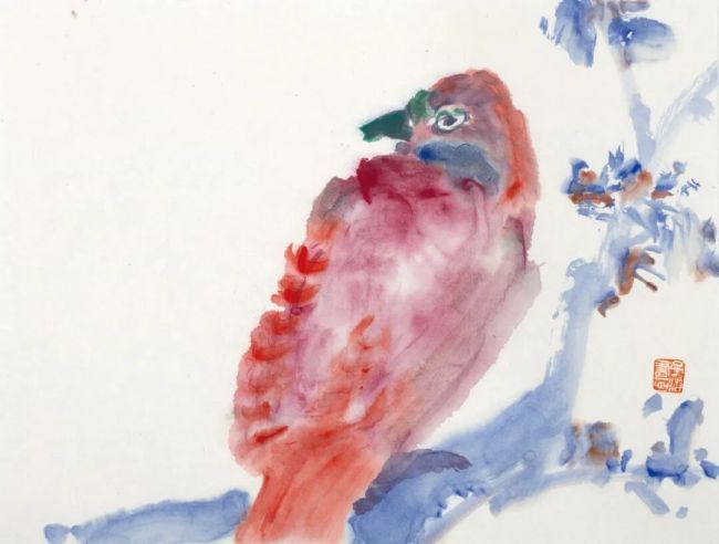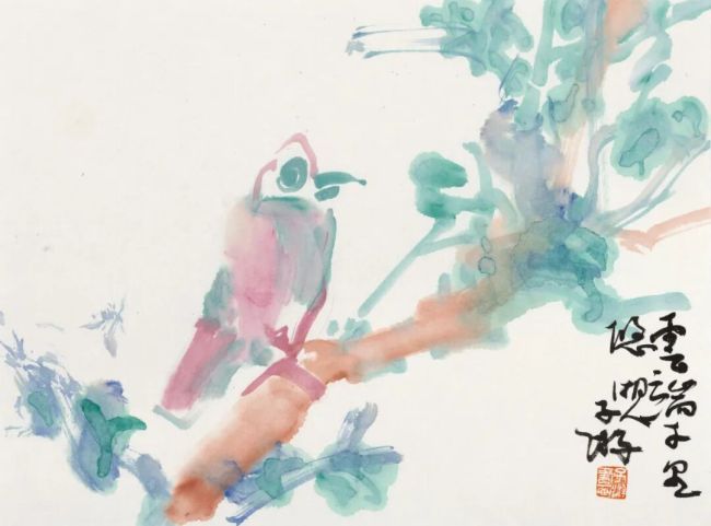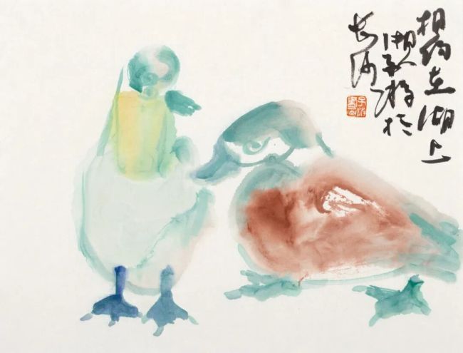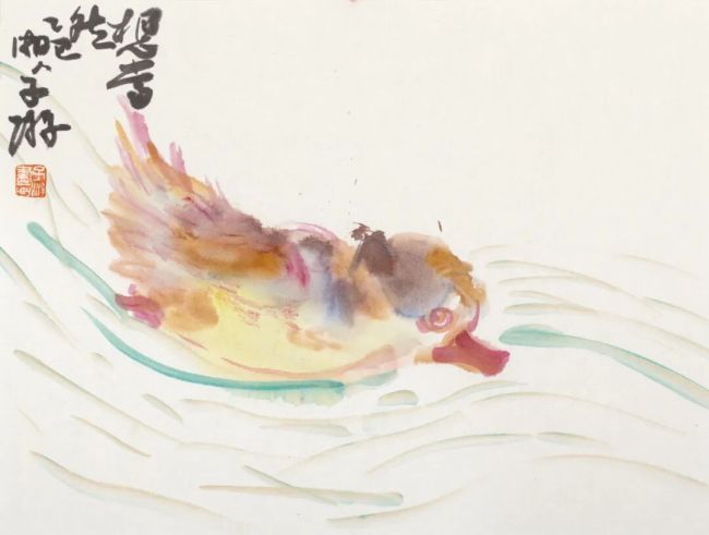 子游的花鸟画,平日里多见纯水墨品类,格调高雅。此次见得一批设色小品,色相鲜亮清润,附着其活泼憨拙的造型,配以灵动雅正的行草跋文,犹如一曲音韵和谐的咏叹调,无法不让人心生喜悦。
