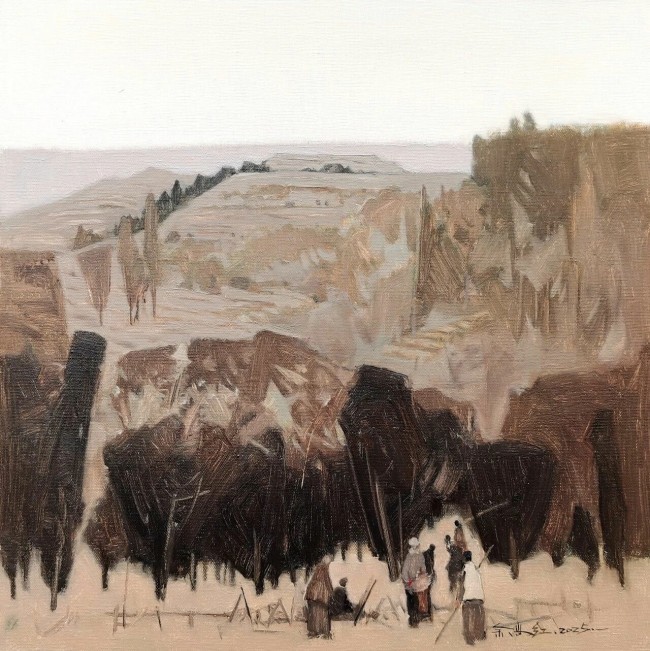 余尚红的绘画语言,具有一种独特的物质感与时间感。他善于运用丰富而微妙的灰色调,这些灰色并非单调的中间色,而是在冷暖、浓淡、薄厚之间做着极其细腻的推移与交织。画面常笼罩在一片苍茫、柔和而又透着些许清冷的光晕之中,这光仿佛不是来自外部某个具体光源,而是从物体内部、从记忆深处幽幽散发出来的。这种对光线的处理,使得他的画面空间既具实在的体量感,又弥漫着一种恍惚的、梦忆般的氛围。在那些看似随意摆放的器物、静物,或是一些极具地域特色的平凡角落中,我们能看到颜料在画布上堆积、流淌、皴擦的痕迹。这些痕迹正是情感与思绪的物质化留存。他用刮刀涂抹,用画笔勾勒,有时又让颜料自然滴淌,形成类似岁月侵蚀或自然风化的肌理。这种对画面物质表层的高度自觉与精心经营,让他的绘画具有了可触摸的“皮肤”与“骨肉”,仿佛每一寸画布都历经了时光的摩挲,沉淀着一段隐秘的故事。