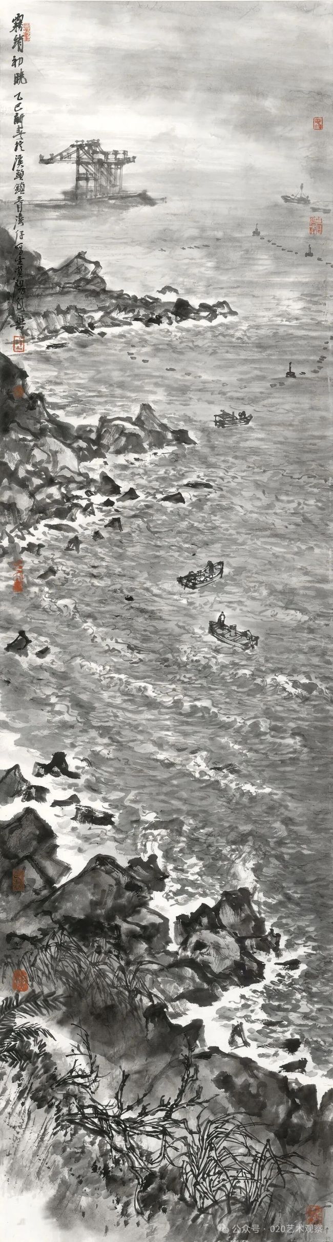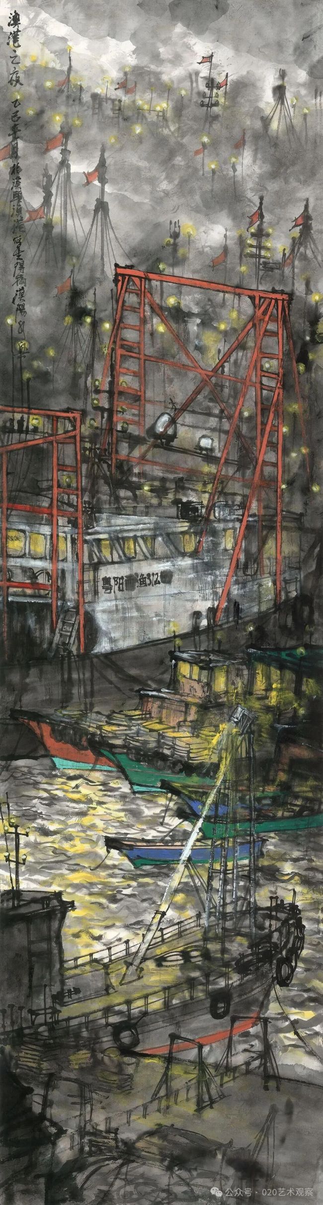 渔港之夜180cm×49cm纸本设色2025年