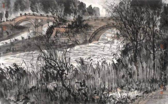 程阳桥一角180cm×48cm纸本水墨2023年