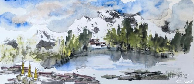 2026美术界春晚作品展播 | 丁杰·《群峰倒影山浮水》:烟江叠嶂,舟行墨韵间